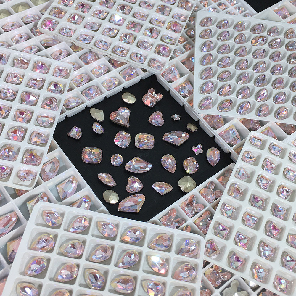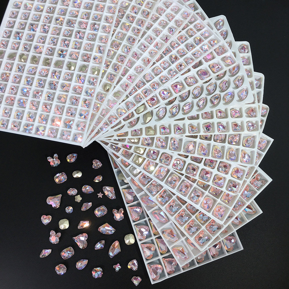 📚 2026年新款尖底异形粉镀膜混合美甲歪心钻干邑粉水晶闪钻立体大钻