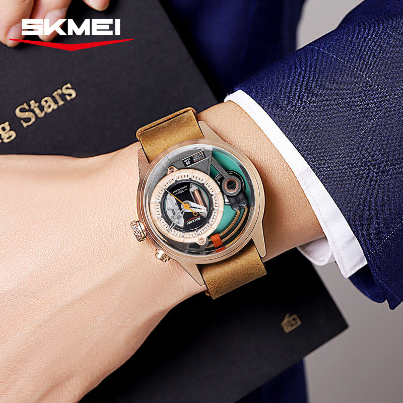 📚 SKMEI时刻美手表男士个性立体LED灯光大表盘多功能防水简约石英表