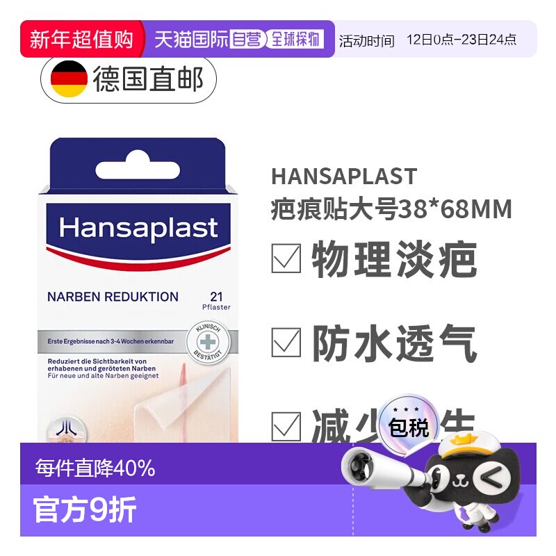 📚 欧洲直邮Hansaplast汉莎祛疤痕贴大号21片剖腹产疤痕淡化增生凸起