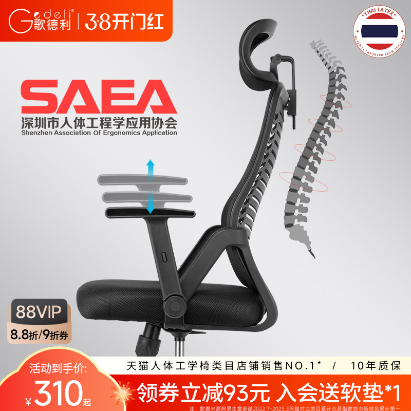 📚 歌德利电脑椅人体工学椅乳胶办公椅子家用舒适久坐宿舍转椅学生椅