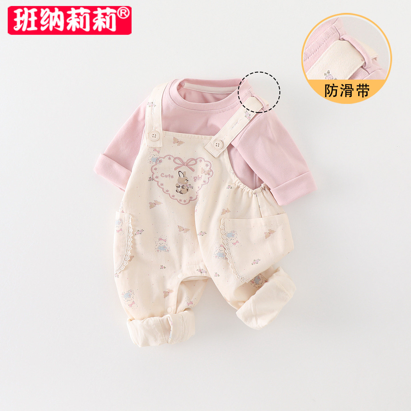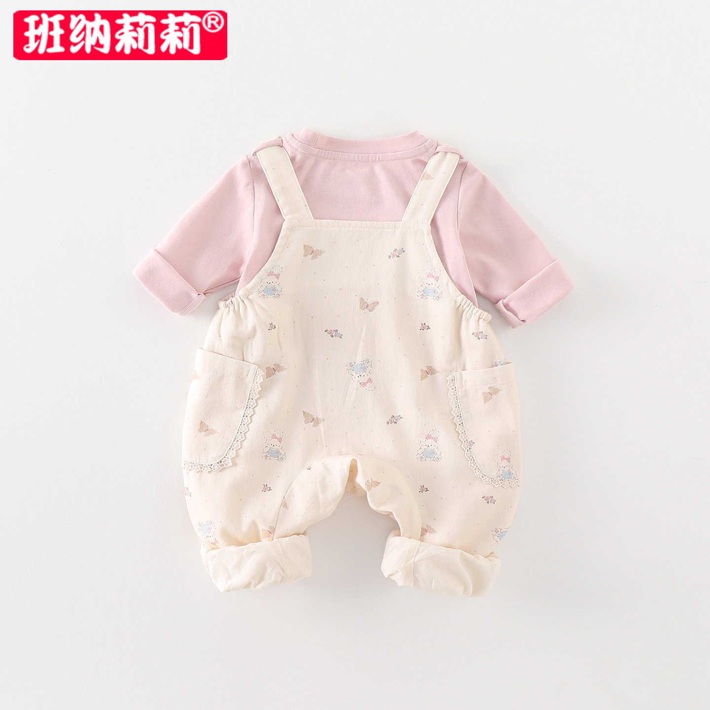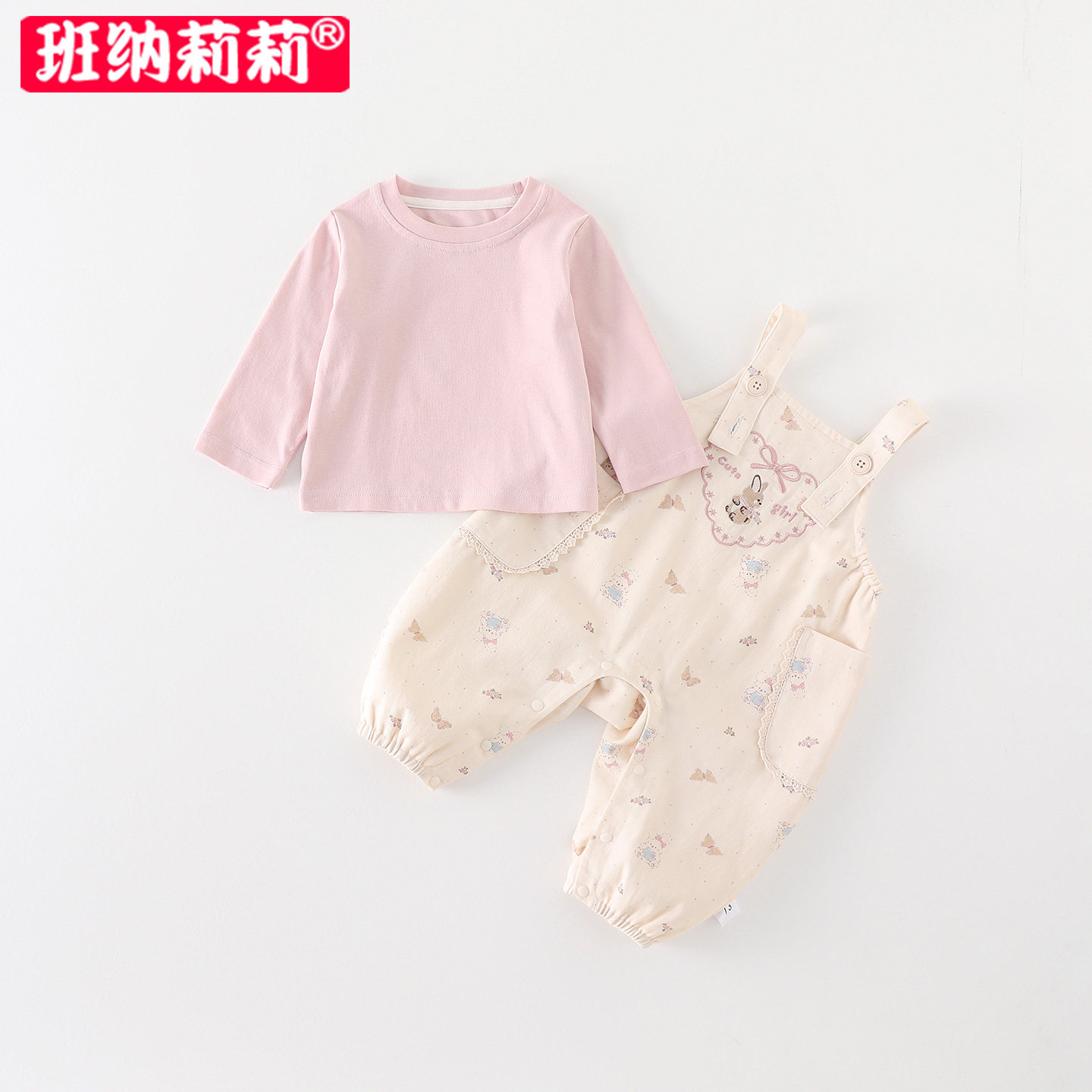 📚 婴幼童背带裤套装春装2026新款洋气女宝宝打底衫春秋季衣服两件套