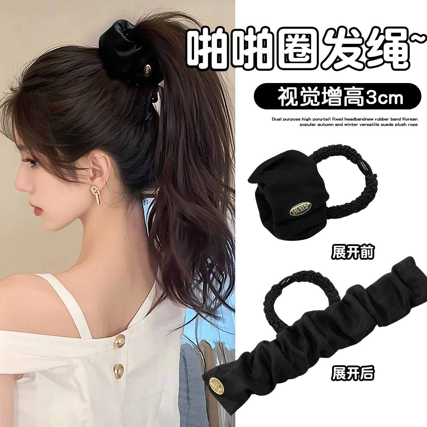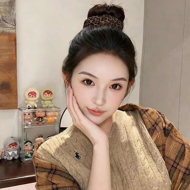 📚 豹纹啪啪圈发圈高马尾固定神器丸子头显发量头绳扎头发高弹力发绳