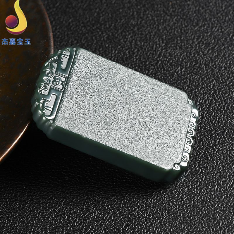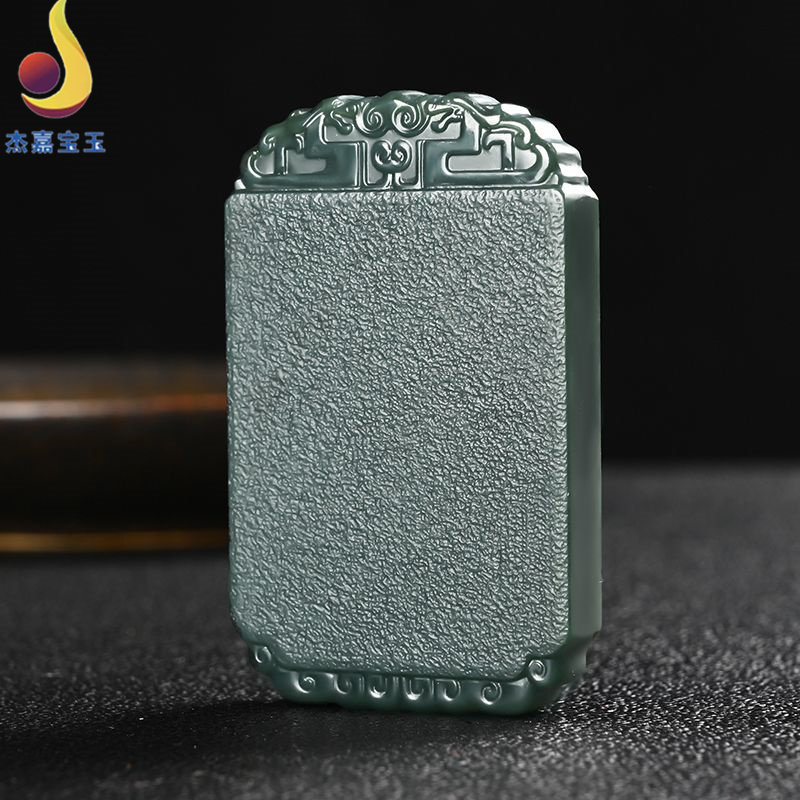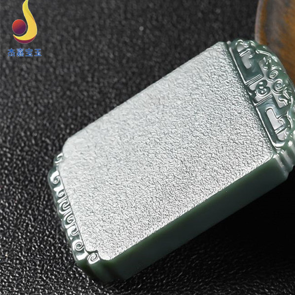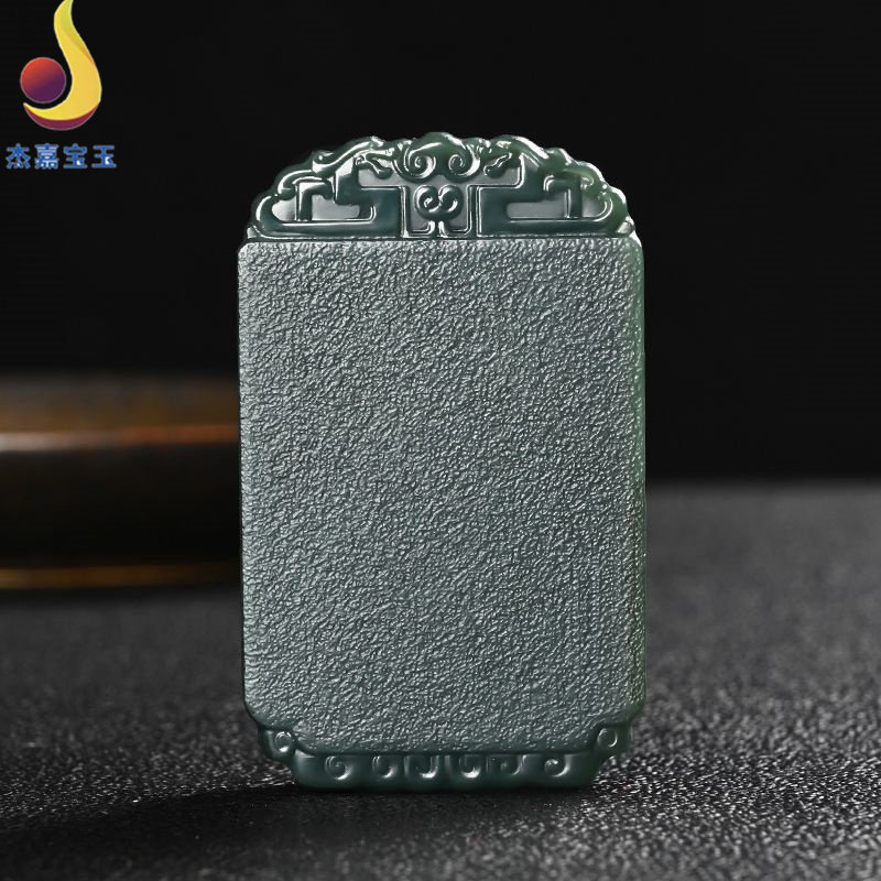 📚 【平安无事牌】新疆和田玉塔青玉无事牌磨砂光特细男女款吊坠挂件
