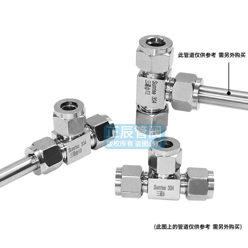 📚 304不锈钢卡套三通接头气源仪表铜管等径中间T型快速插锁终端内丝