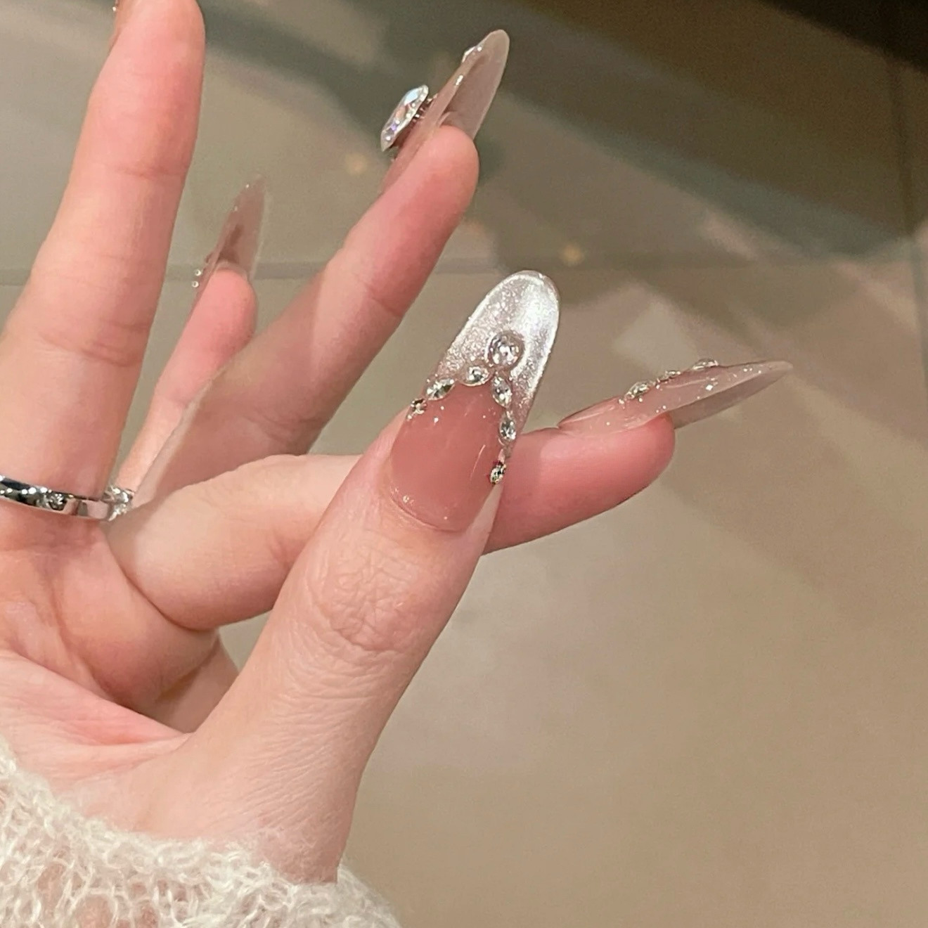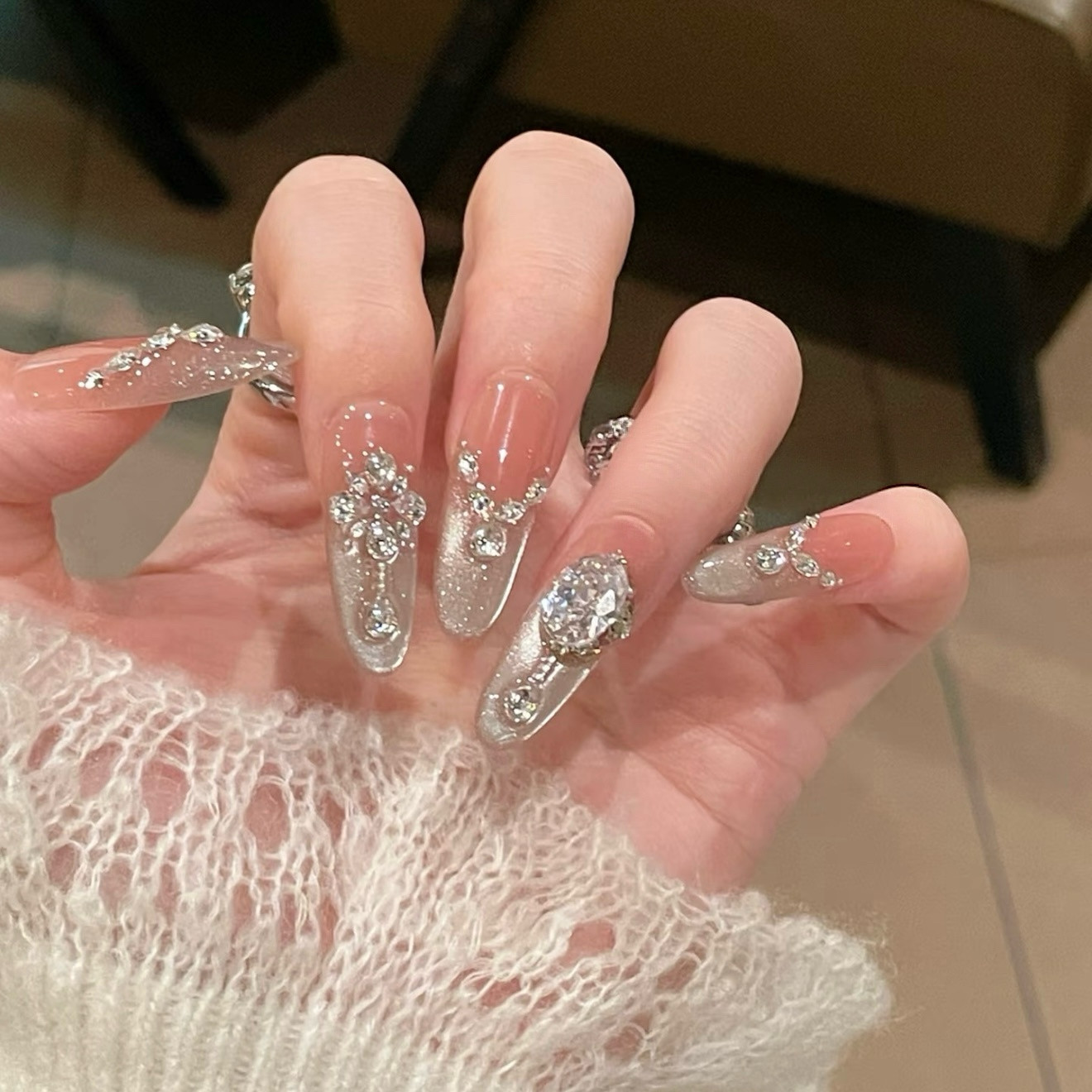 📚 【月下朦胧】爆闪星锆婚甲温柔月光猫眼手工穿戴甲显白轻奢美甲贴