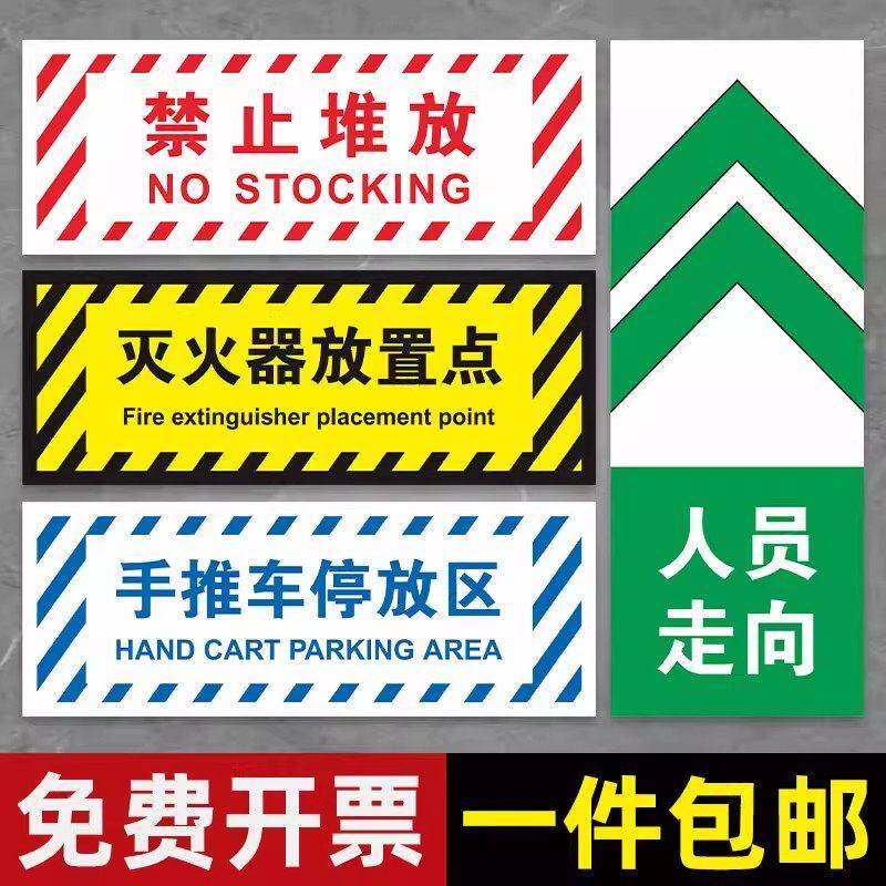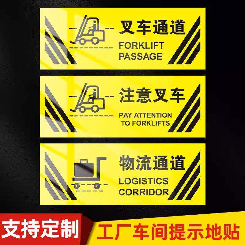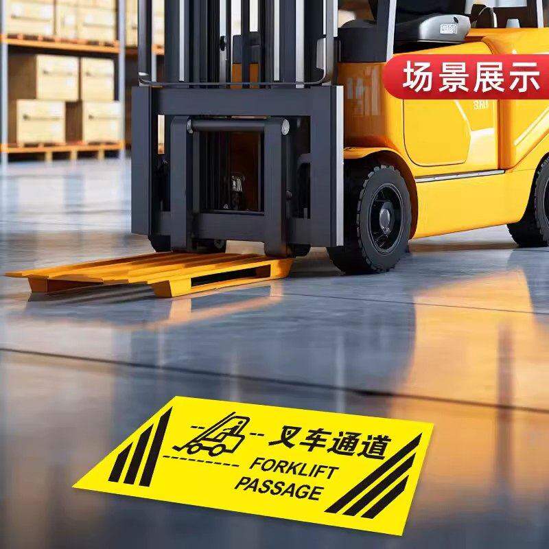 📚 车间仓库警示地板贴灭火器放置点 商场超市手推车停放处标贴注意堆高机通道请保持清洁当心堆高机物流人员走