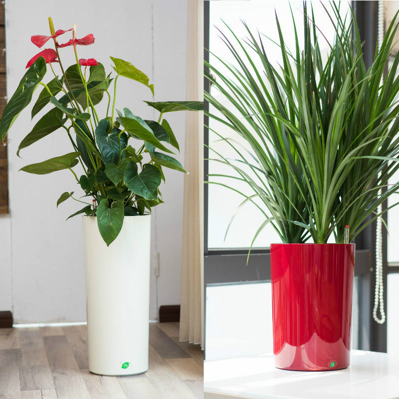 📚 宜植堂北欧简约高直筒花盆细高型高款懒人自动吸水红掌白掌水培盆