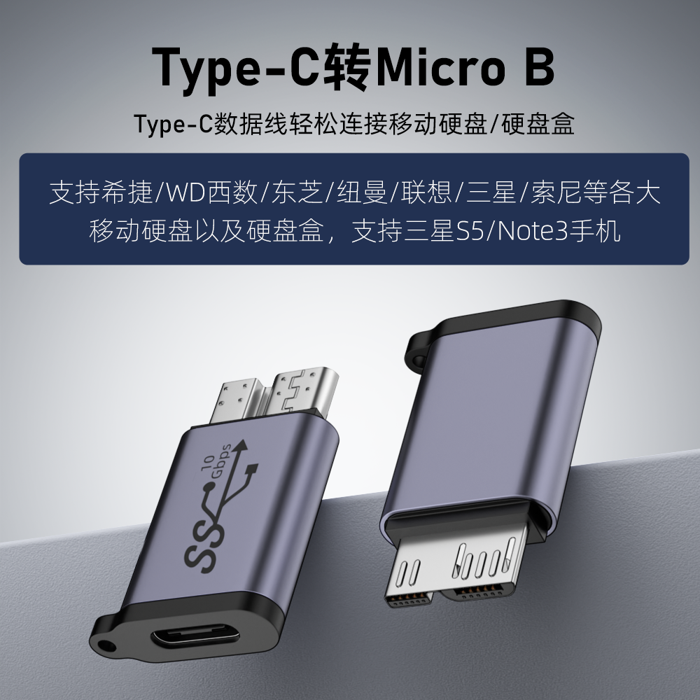 📚 TYPEC母口转MicroUSB3.0转接头老式移动硬盘单反相机联机拍摄microB转USBC公连接电脑数据线10Gbps高速转换器