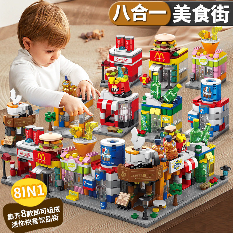 📚 乐乐兄弟8755饮品小吃街积木拼装玩具益智拼装男女孩儿童批发