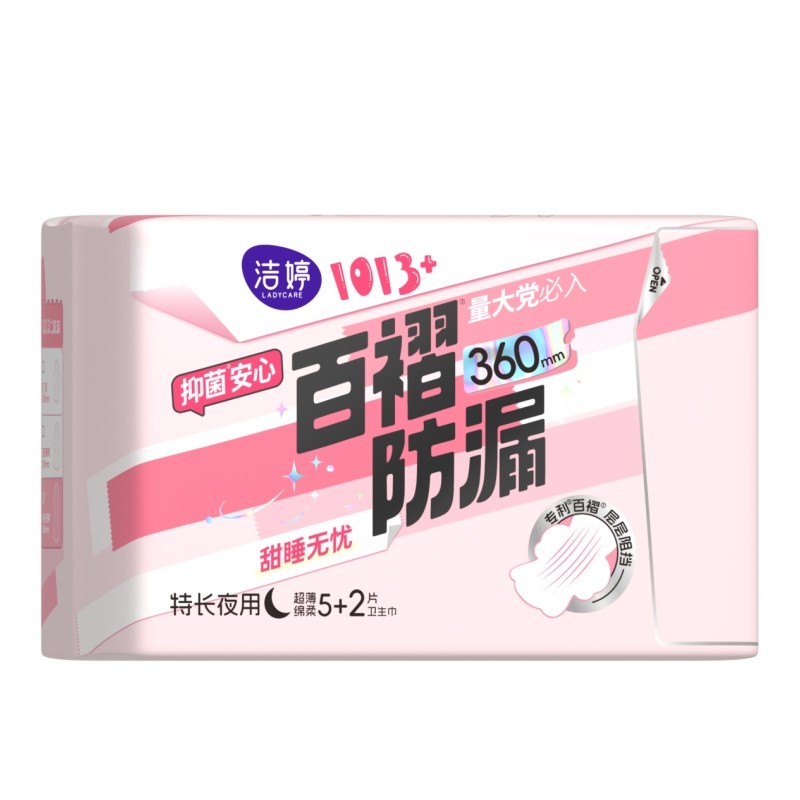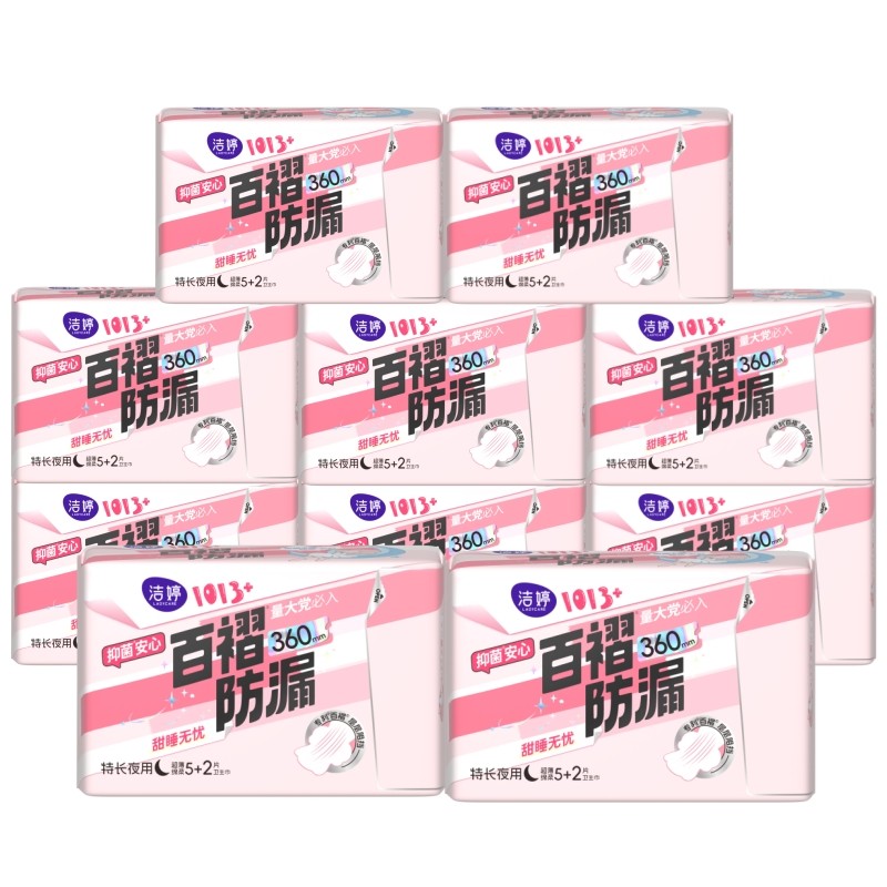 📚 洁婷卫生巾1013+少女棉柔超长夜用加长360mm整箱24包卫生棉姨妈巾