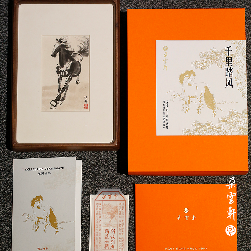 📚 朵云轩徐悲鸿千里踏风国画马木版水印画片1986年印收藏品桌面摆件