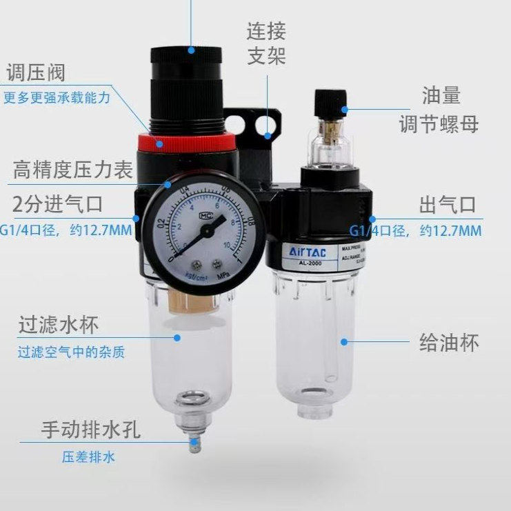 📚 气压调压阀AFC2000空压机油水分离器气泵过滤器二联件AFR减压阀