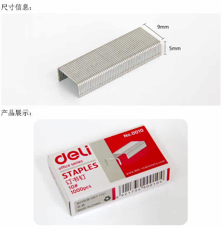 📚 得力0421订书机带起钉器订书针0010订书钉10号小号订书针装订机