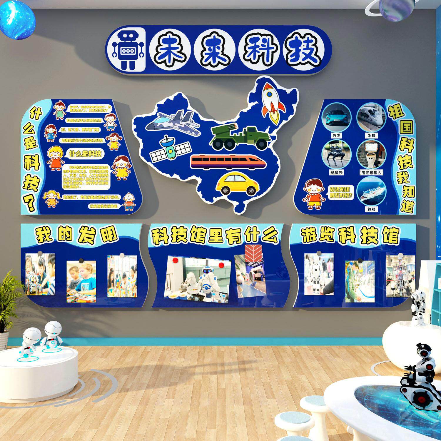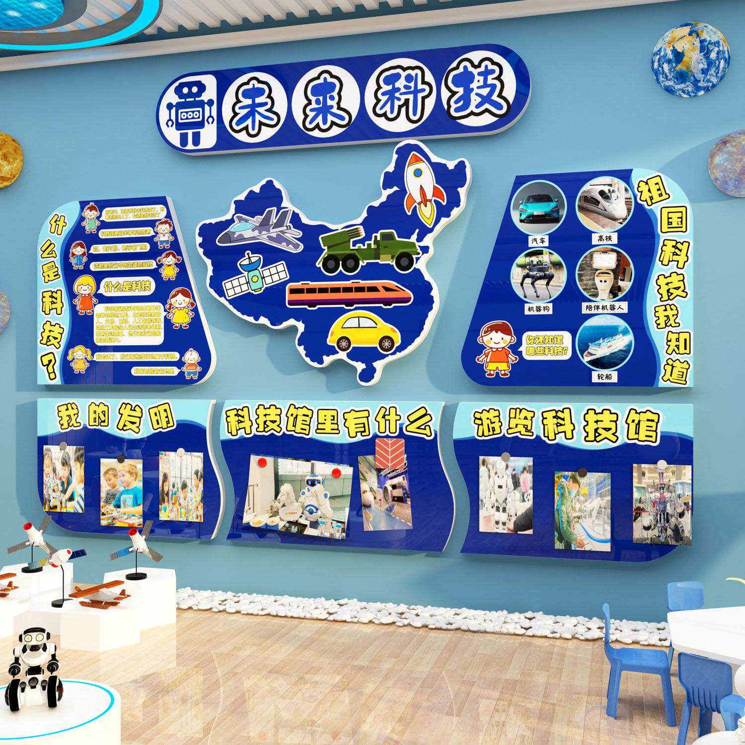 📚 科技节主题文化墙贴环创航天学区教室场景布置中国创新幼儿园成品