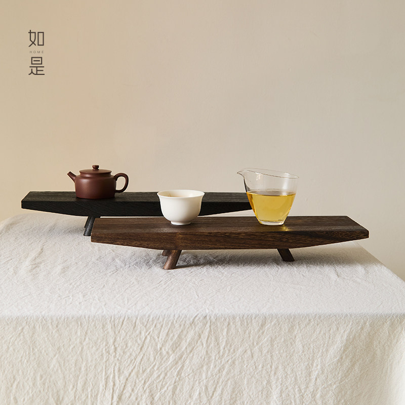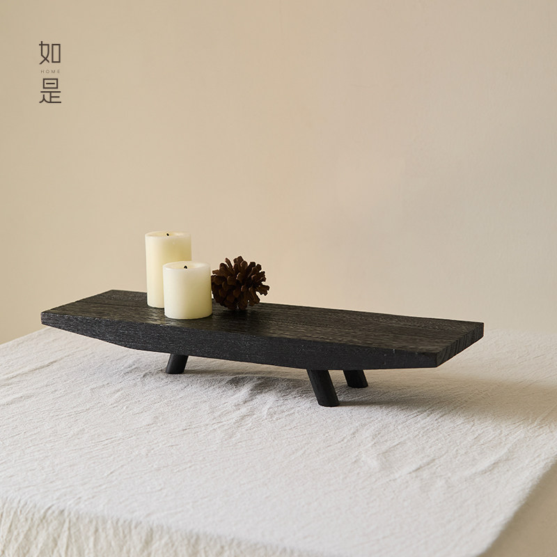 📚 如是/碳化木做旧侘寂风干泡茶盘客厅茶室民宿实木装饰托盘蜡烛托