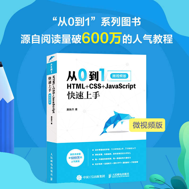 📚 当当网 从0到1 HTML+CSS+JavaScript快速上手 微视频版 莫振杰 人民邮电出版社 正版书籍