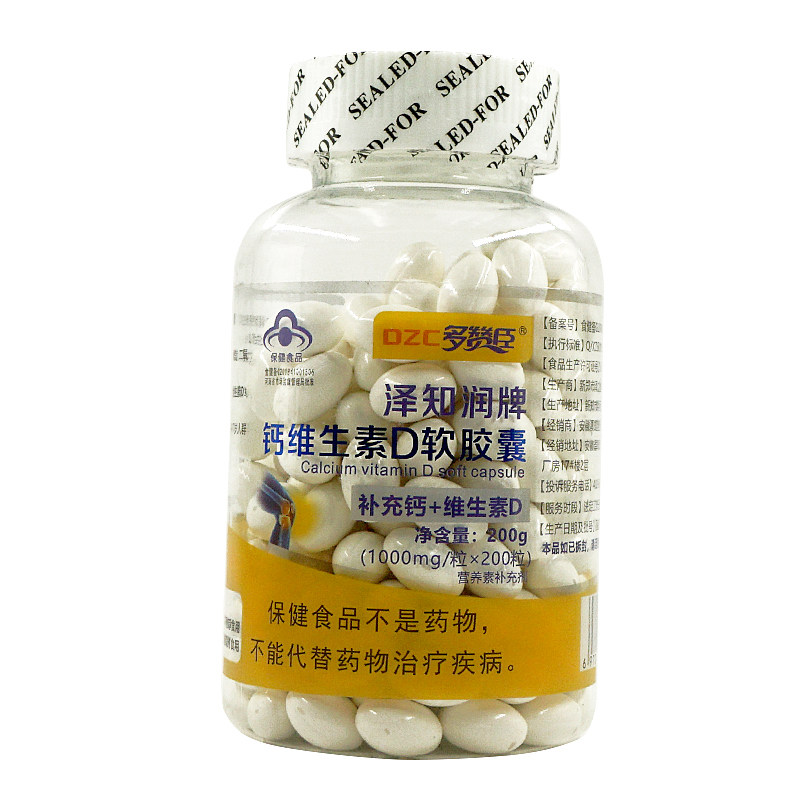 📚 多赞臣泽知润牌钙维生素D软胶囊200粒成人中老年人补钙VD碳酸钙