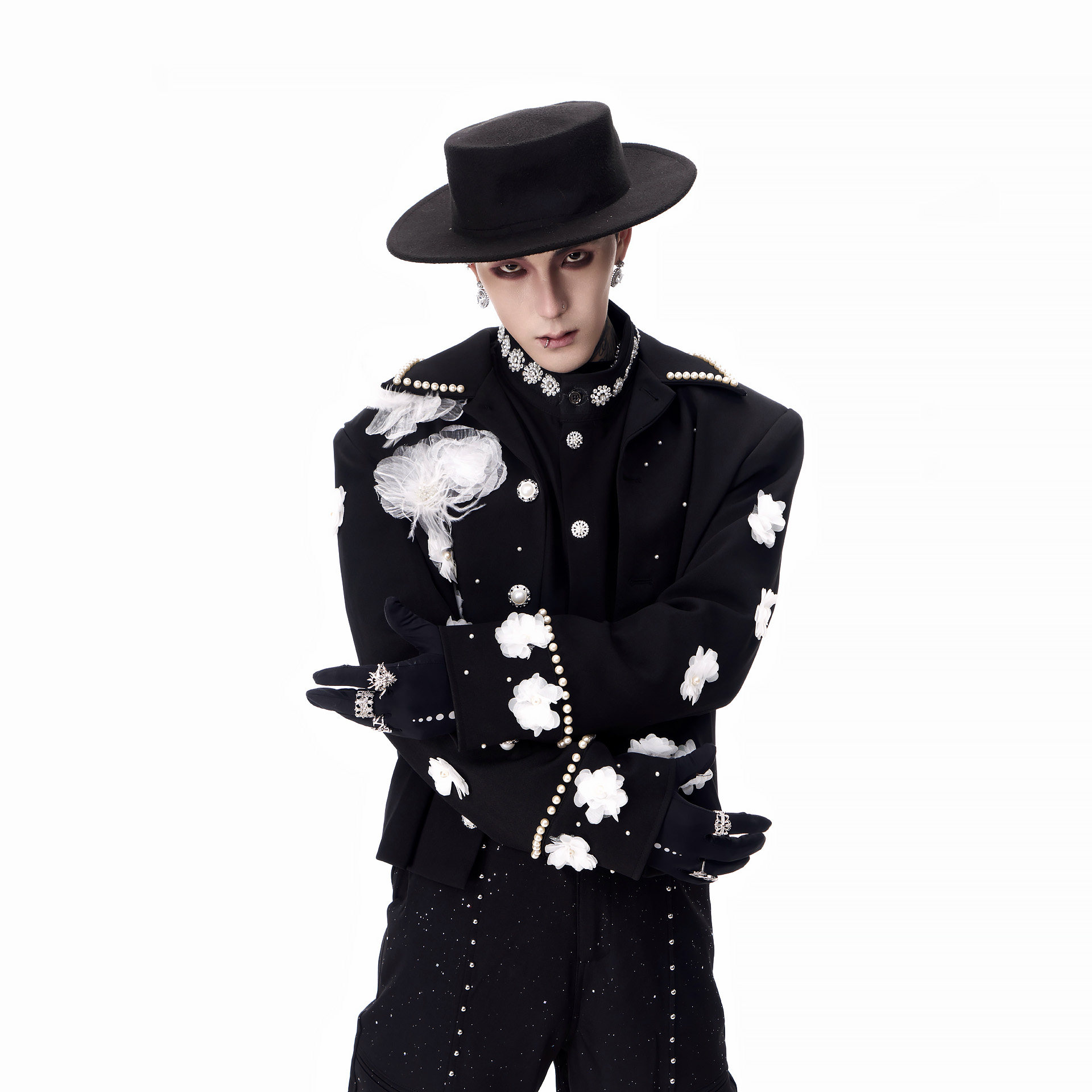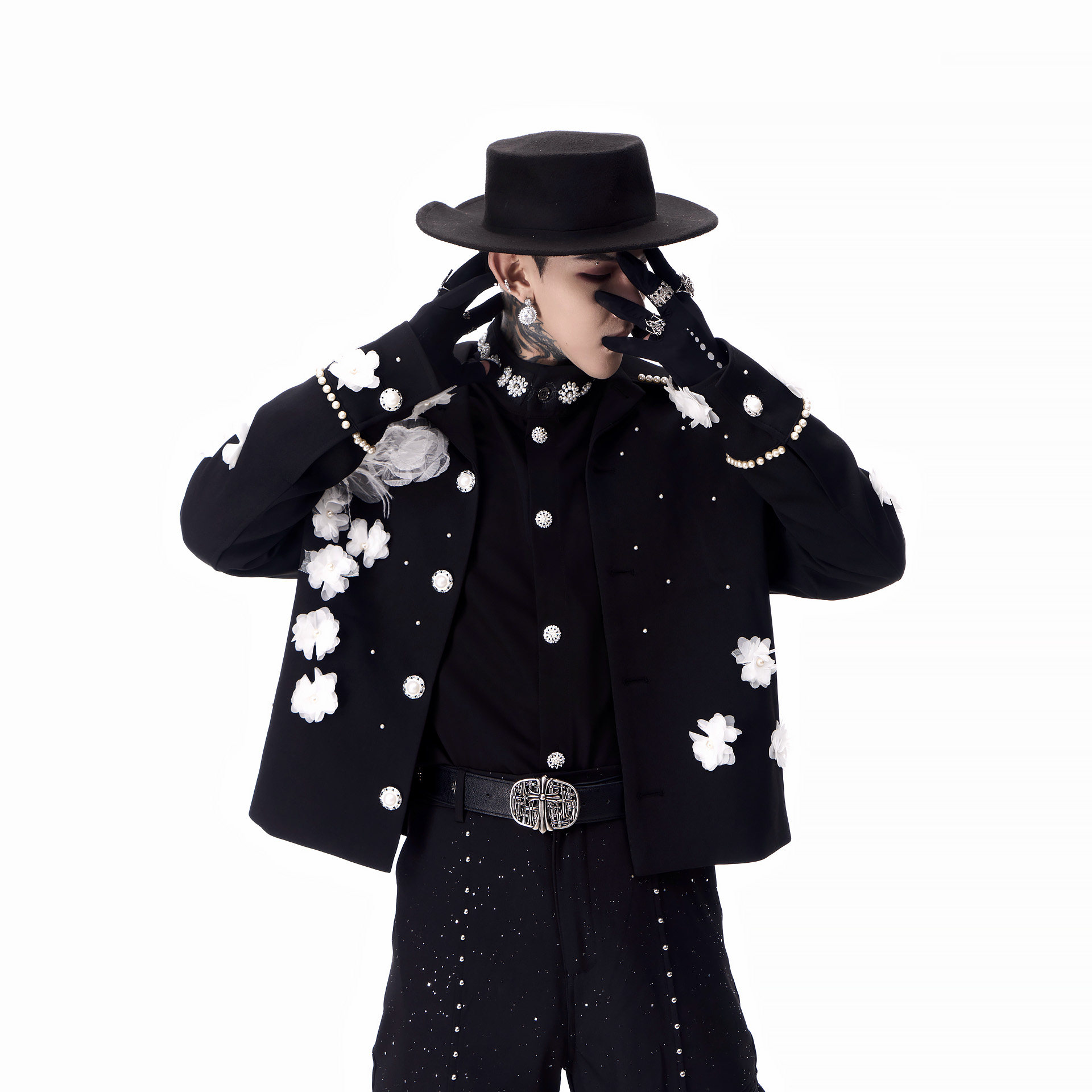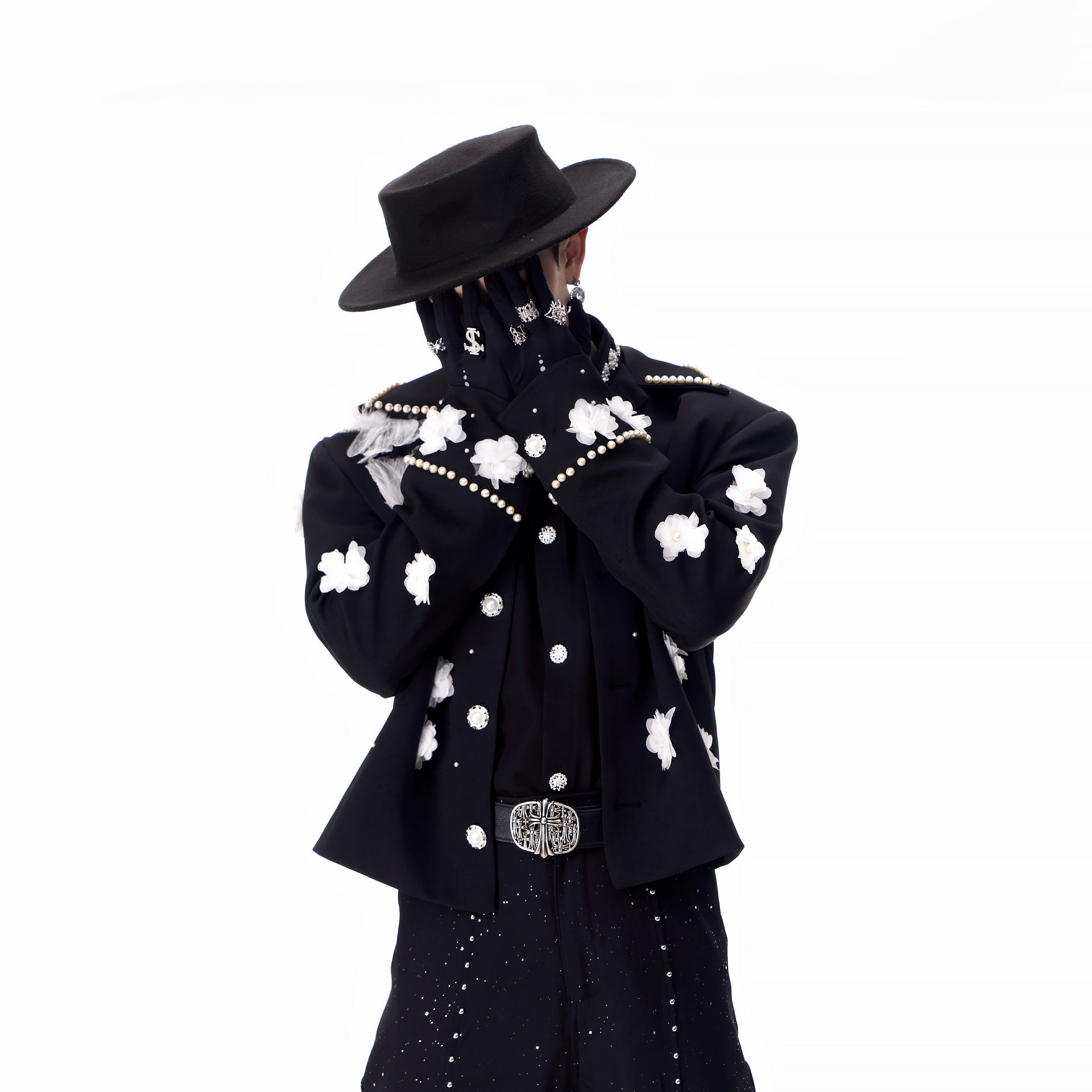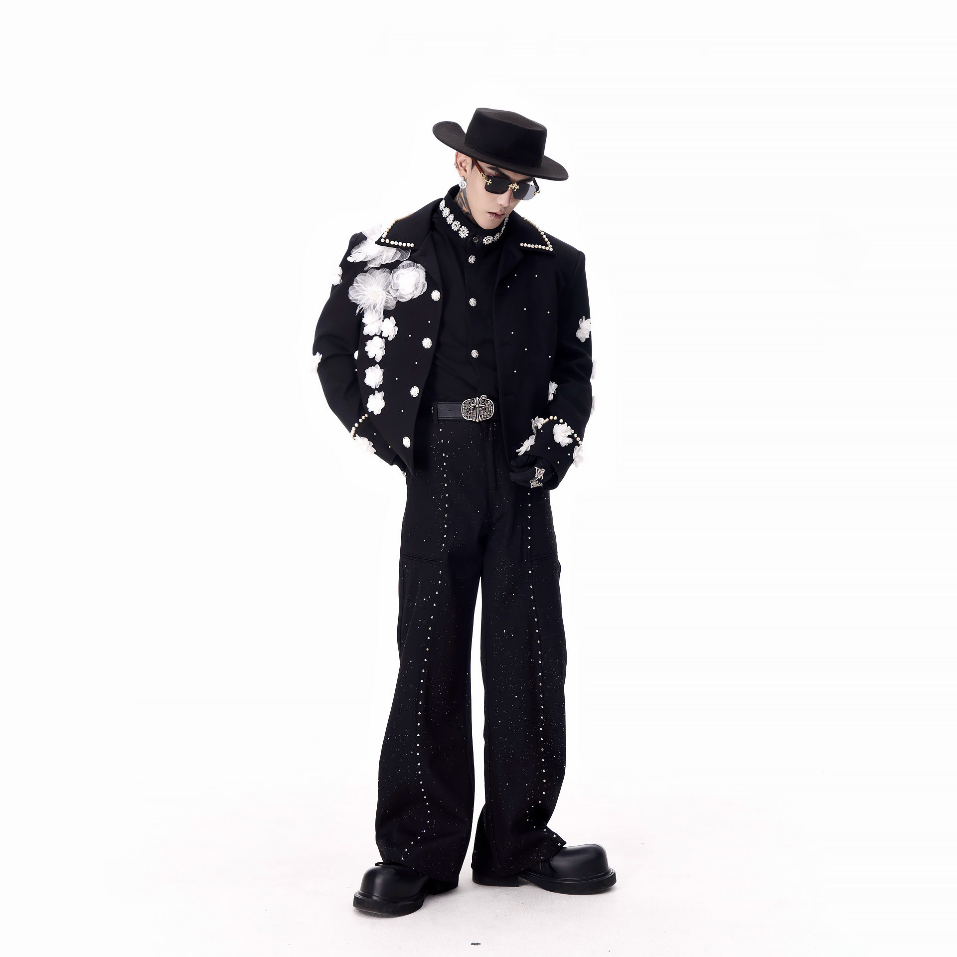 📚 牧羊帅 高级感秀场立体花朵短款垫肩夹克男模团队演出小香风外套