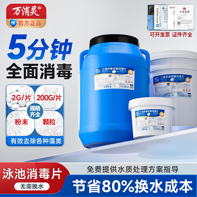 📚 万消灵泳池专用消毒片速溶杀菌泳馆消毒剂强氯精三氯异氢尿酸氯片
