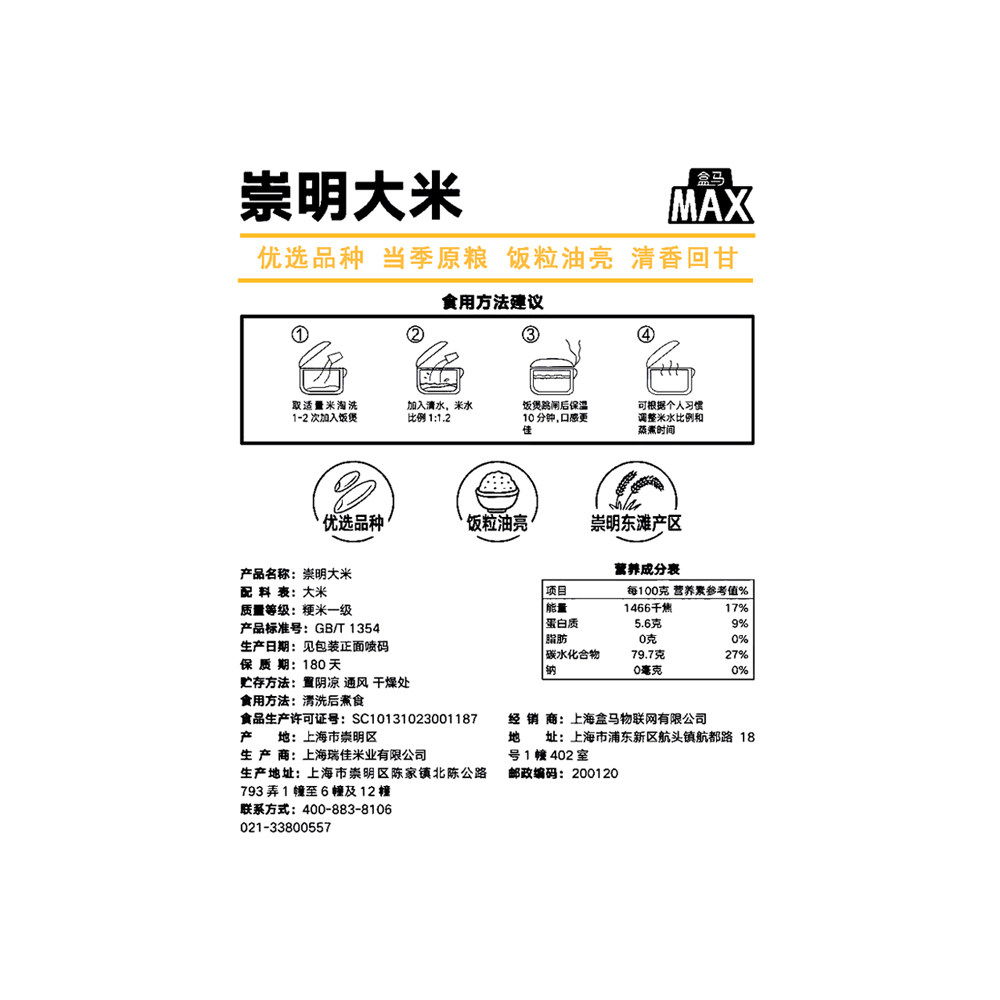 📚 盒马MAX 崇明大米 5kg*2袋正宗崇明10kg大米
