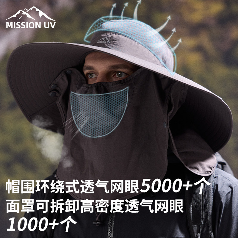 📚 MISSION UV防晒帽男面罩渔夫帽防紫外线大檐大头遮阳帽钓鱼帽子男