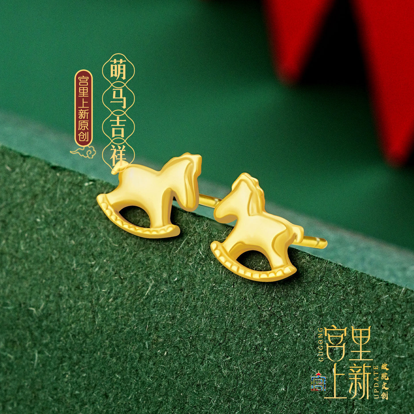📚 宫里上新小马耳饰马上有钱耳钉女纯银养耳洞生日马年本命年礼物