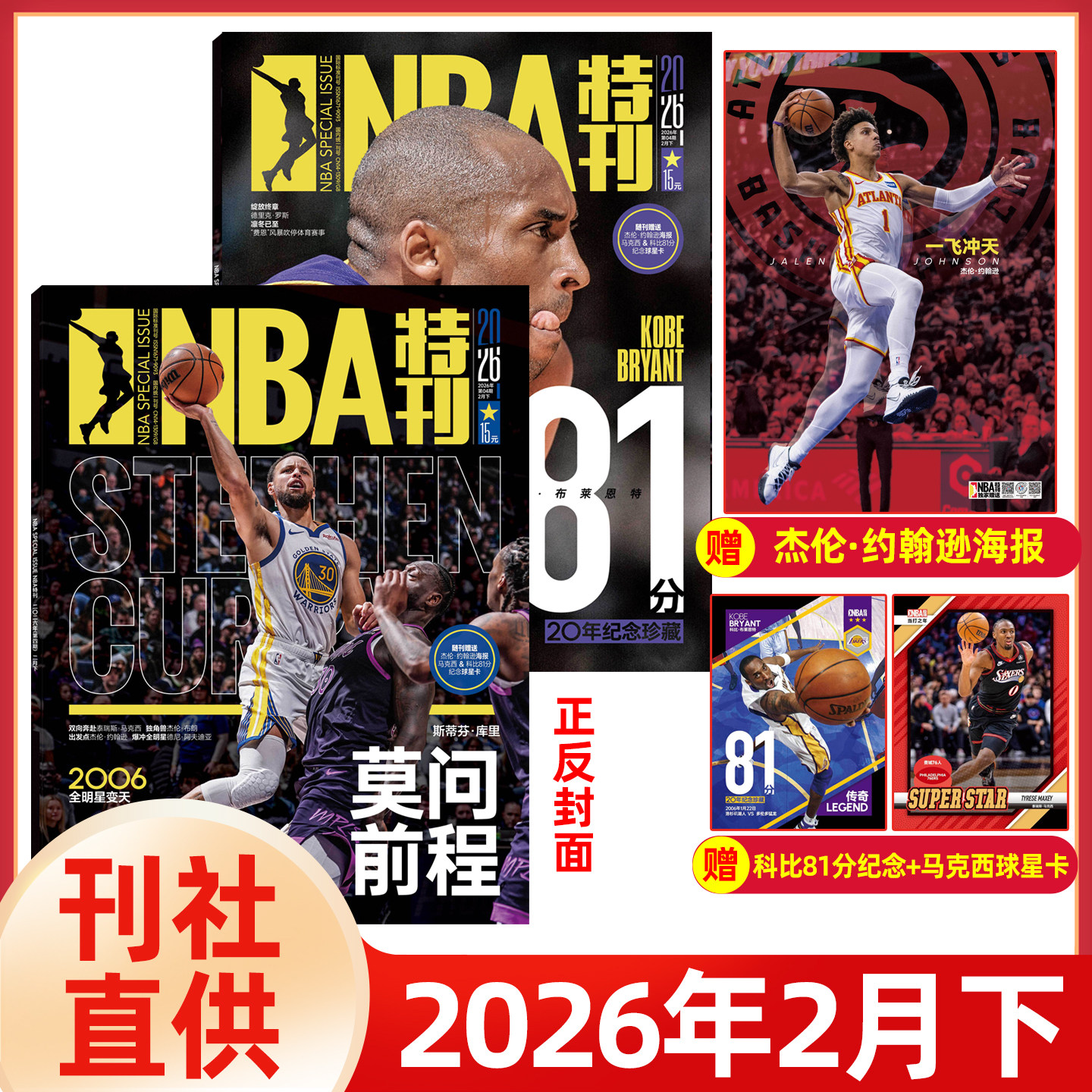 📚 【送海报+球星卡】NBA特刊杂志2026年1/2月科比/2025年1-12月詹姆斯/库里中国男篮/杨瀚森保罗哈登/总冠军特辑 灌篮球星篮球体育