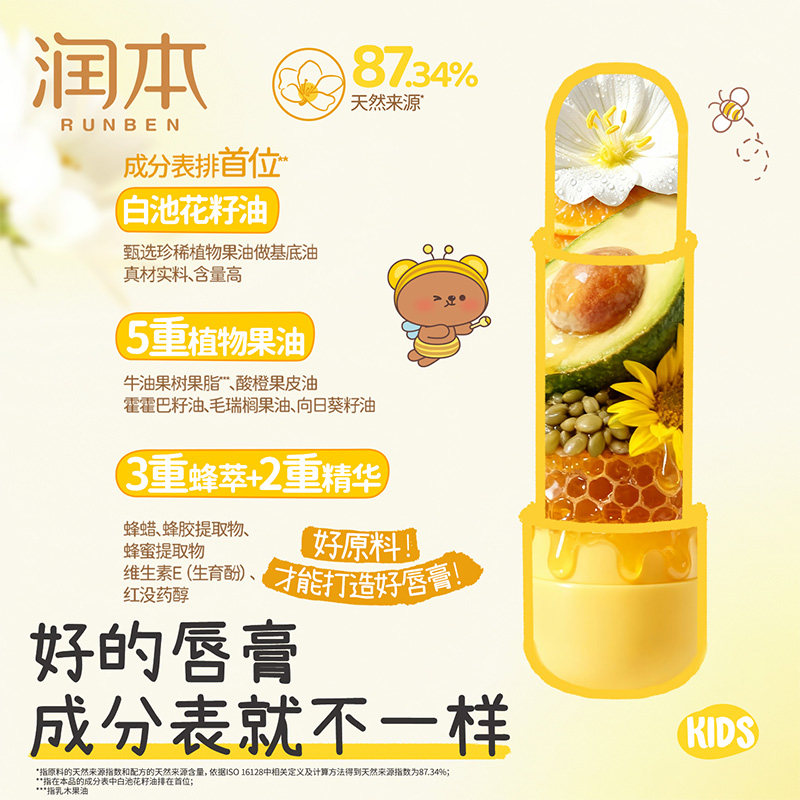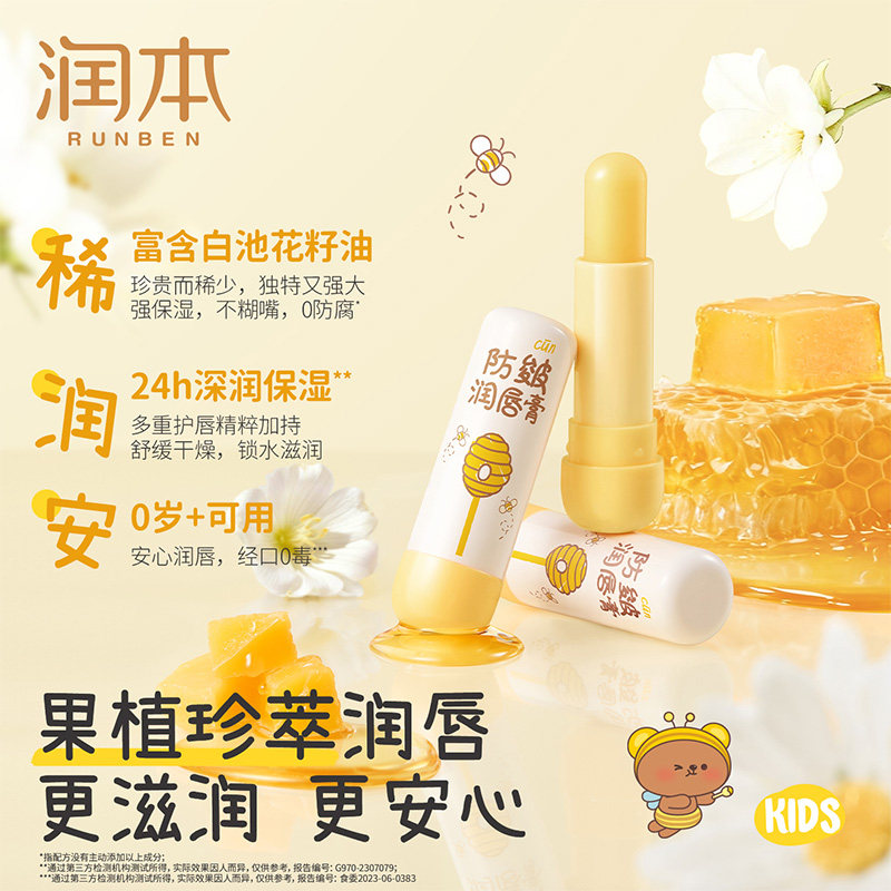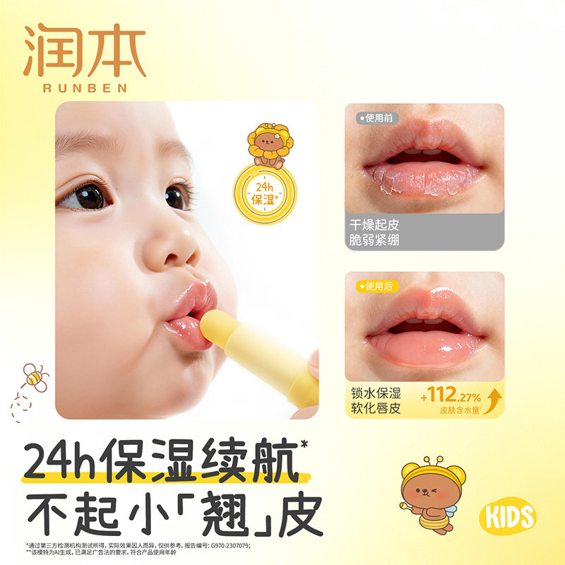 📚 润本儿童防皴润唇膏滋润补水高效保湿宝宝专用学生护唇膏防干裂4g