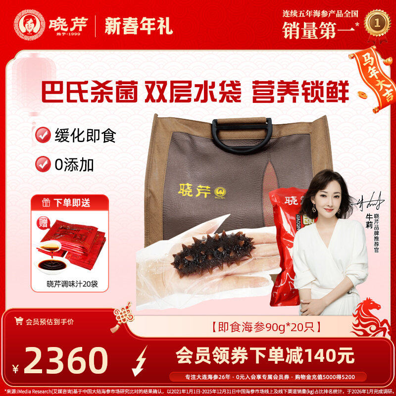📚 晓芹即食海参90g/只大海参20根大连辽刺参配调味汁即食海参礼箱