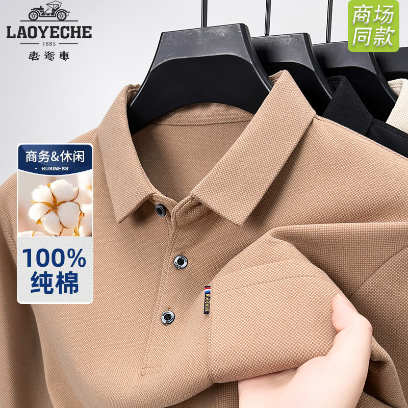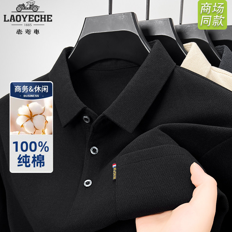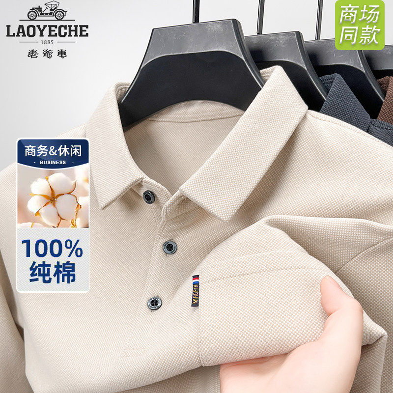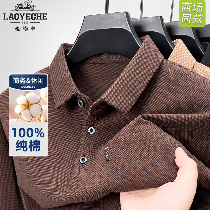 📚 【100%纯棉】老爷车男士长袖T恤秋季新款中年爸爸全棉上衣Polo衫