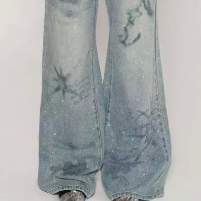 📚 senseaweek 航海图烫钻宽松牛仔裤