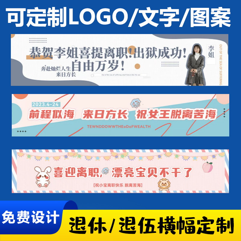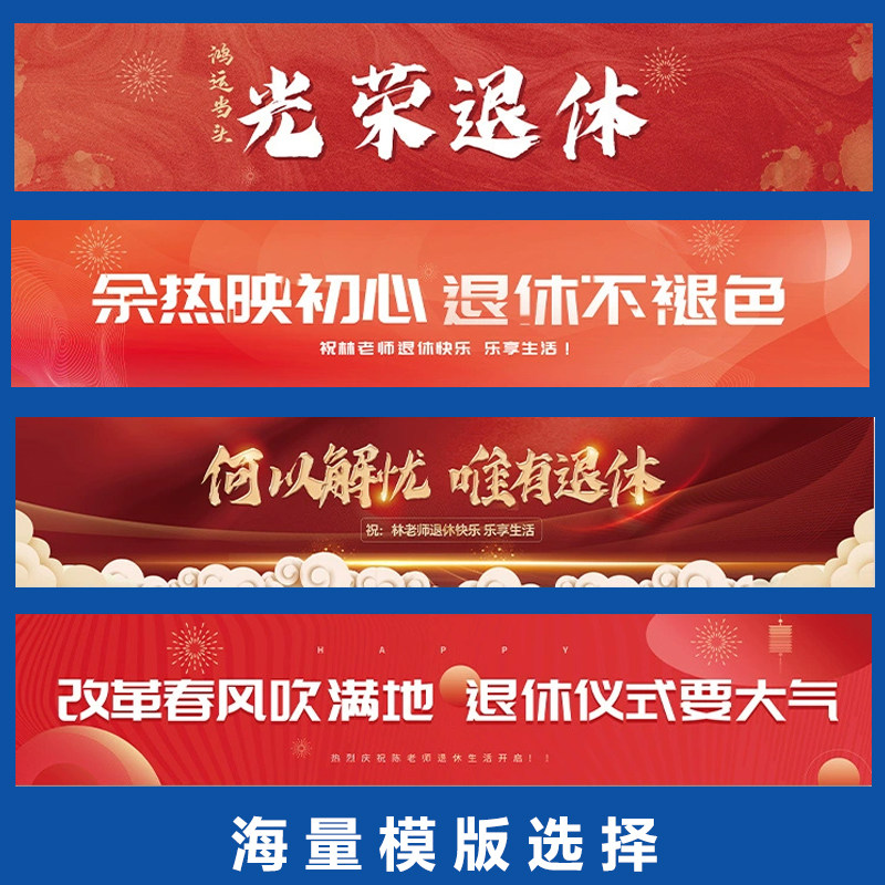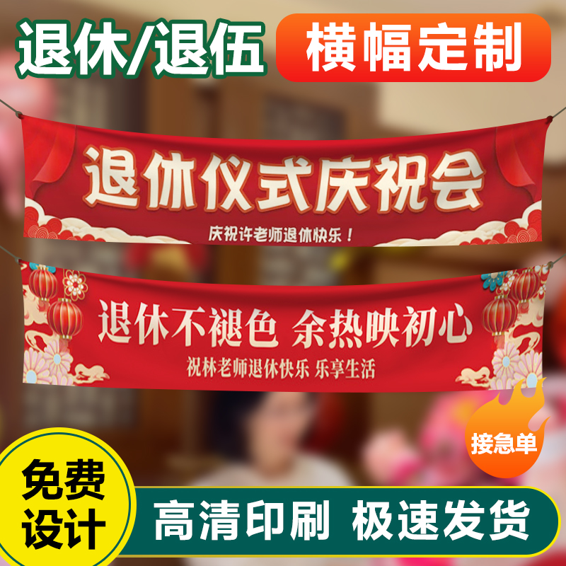 📚 退休彩色横幅定制老教师欢送会旗子定做纪念同学离职战友兄弟聚会布置标语旗帜设计欢迎回家光荣退伍条幅制作