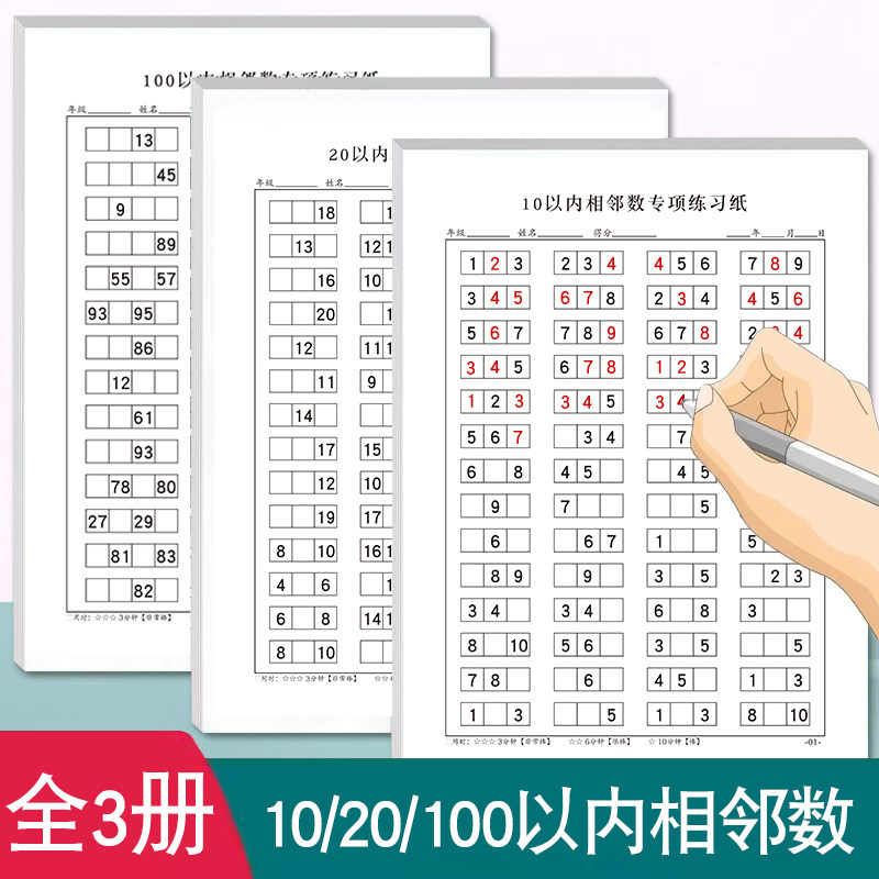 📚 10以内20以内100以内相邻数找规律数字排序逻辑思维练习纸学前一年级数学以内数字相邻数专项练习数感训练题