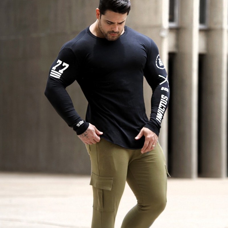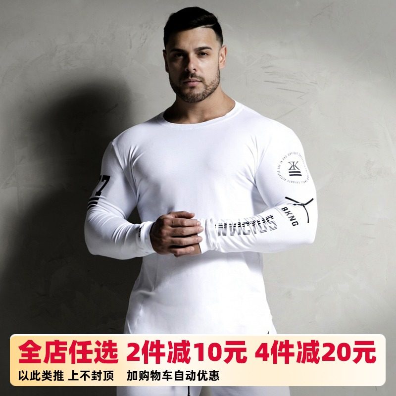 📚 速干健身长袖肌肉男士训练透气打底衫弹力紧身衣运动跑步锻炼T恤