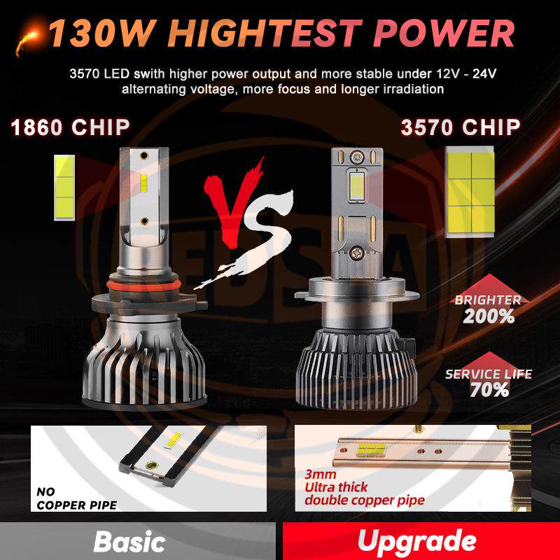📚 Redsea130W R22led车灯12v H1H7 9005 9006 H11 led headlight H4