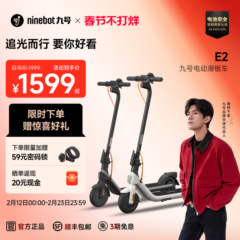 27¥ CZ321 2hRbUMjOELN¥ https://m.tb.cn/h.7ywvy82 【易烊千玺同款】九号Ninebot电动滑板车9号成人折叠上班代步E2 --------------------- 【原售价】1,999元 【现售价】1,999元。