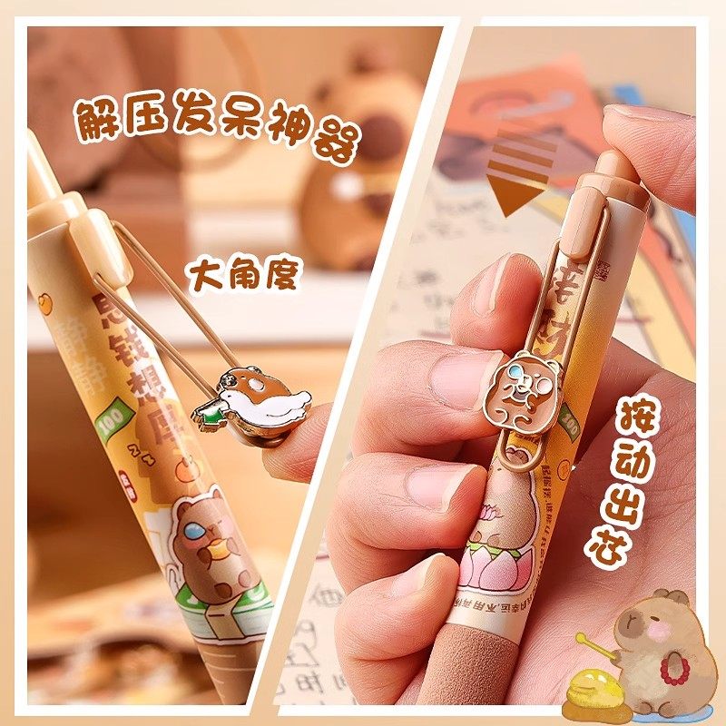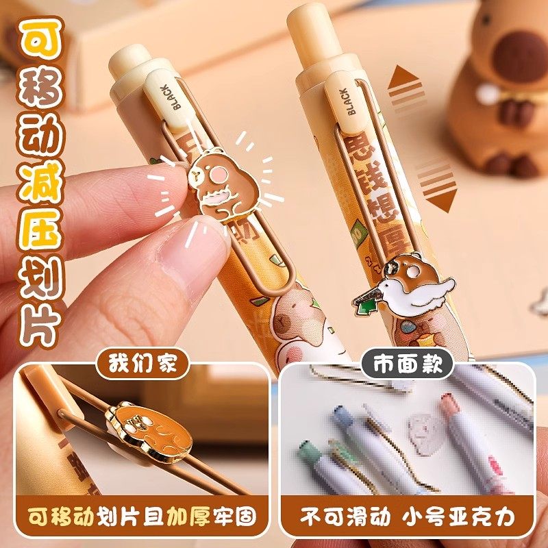 📚 卡皮巴拉减负减压笔刷题笔速干高颜值按动中性笔初中学生用0.5黑色st头黑水笔大容量女生可爱黑笔握顺滑考试