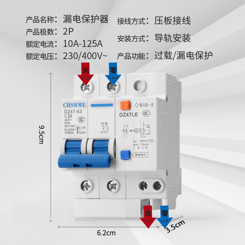 📚 【正品】漏电保护器DZ47LE2P63A空气开关带漏电开关空开C45家用