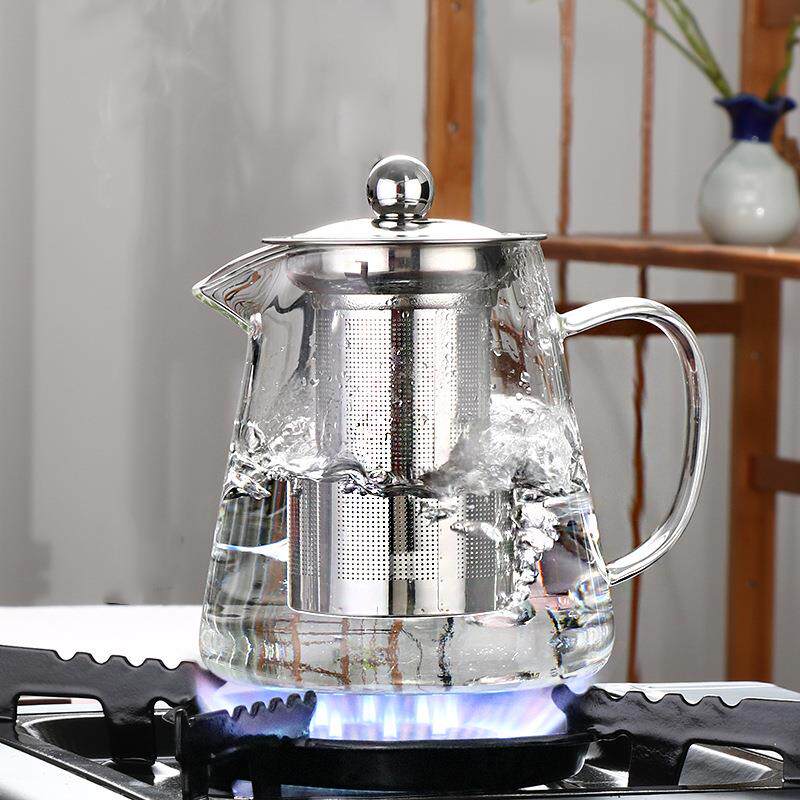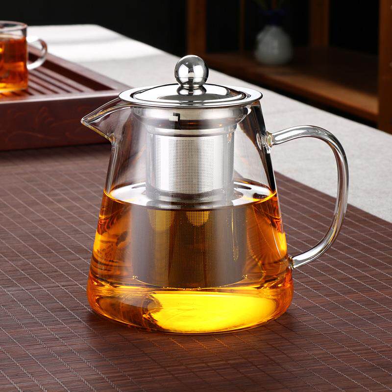 📚 爆款家用高硼硅玻璃三角茶壶不锈钢漏泡茶壶家用钢漏壶厂家直销
