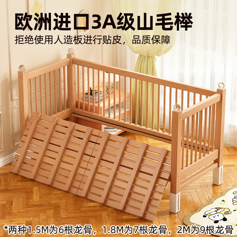 📚 榉木儿童拼接床实木侧边升降宝宝婴儿床小床大人可睡床边加宽神器