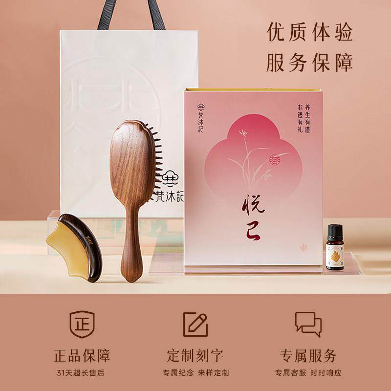 📚 梵沐记养生檀木梳子礼盒按摩梳套装天然木梳实用送妈妈礼物母亲节