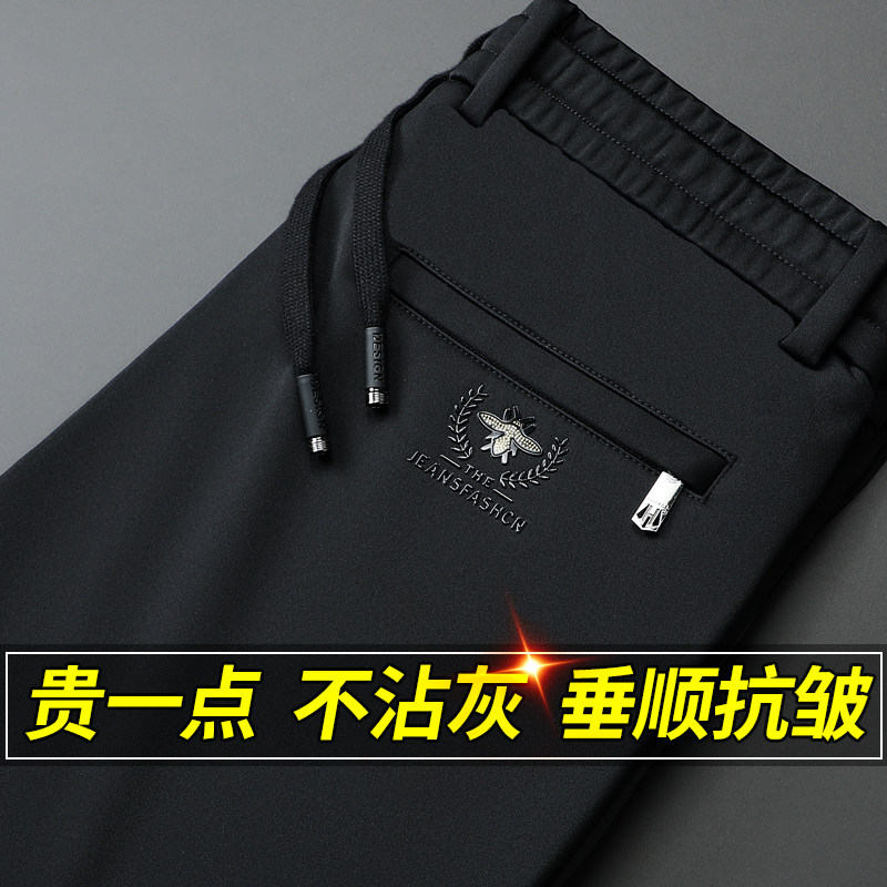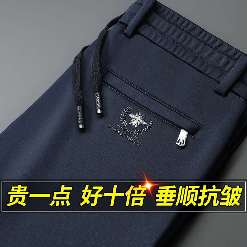 📚 高弹力松紧腰裤子男春夏季薄款中年运动休闲裤加肥加大码宽松西裤