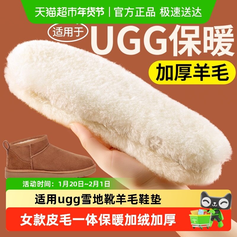 📚 适用ugg雪地靴羊毛鞋垫女款皮毛一体保暖加绒加厚棉鞋垫男款冬季