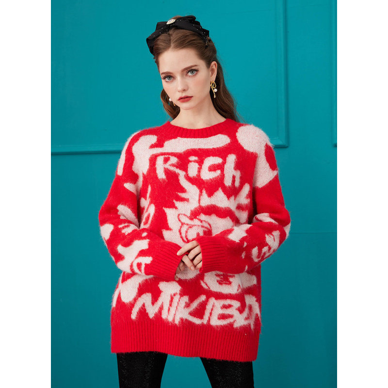 📚 MIKIBANA绵羊毛新龙年红色毛针织衫拜年服24年春季新品Y41TP8001