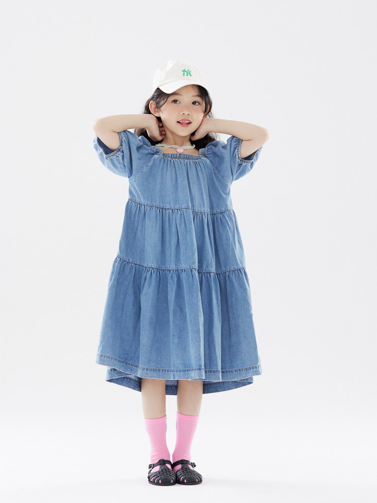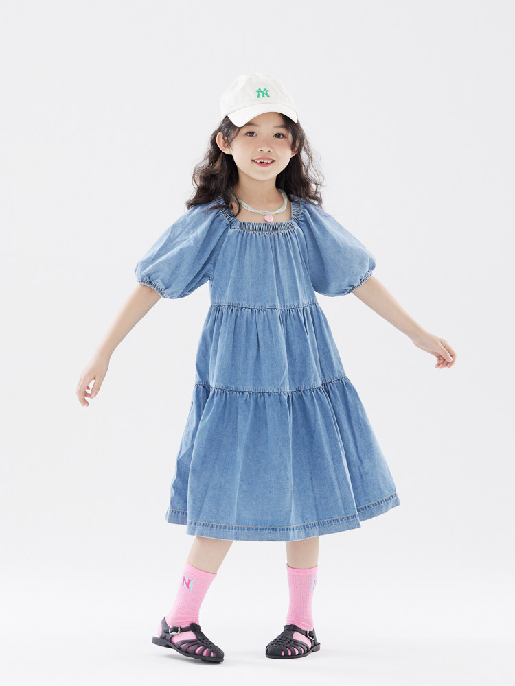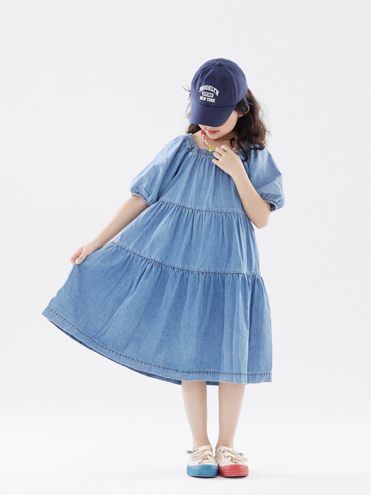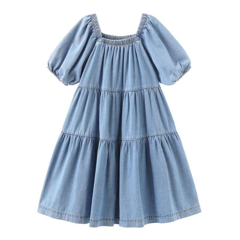 📚 OLAMIMI定制 夏 亲子甜美清新多层次拼接泡泡袖休闲牛仔连衣裙