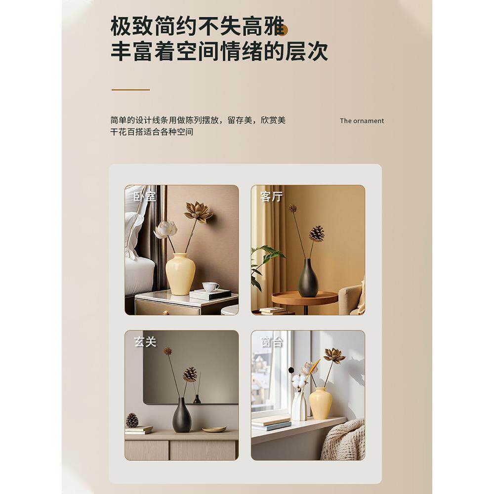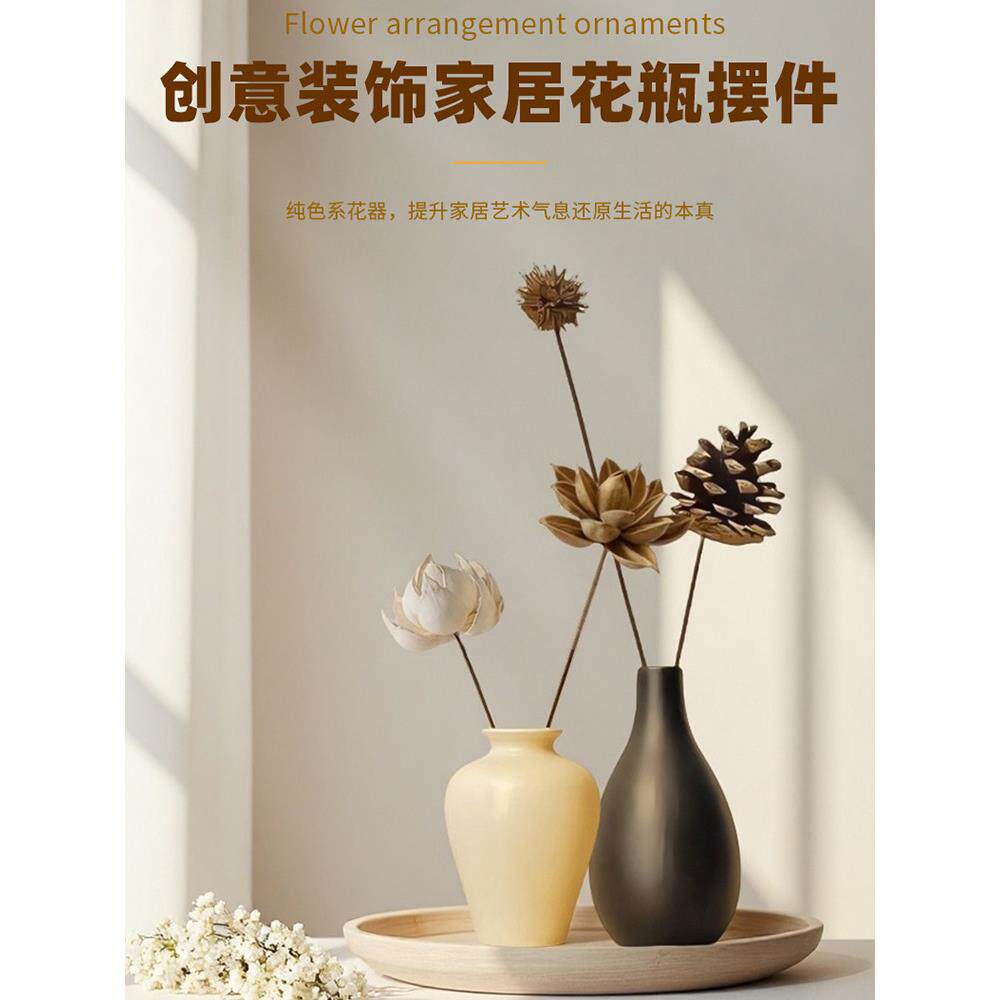 📚 简约干花黑陶瓷花瓶网红高级感中古装饰客厅餐厅小众插花小摆件
