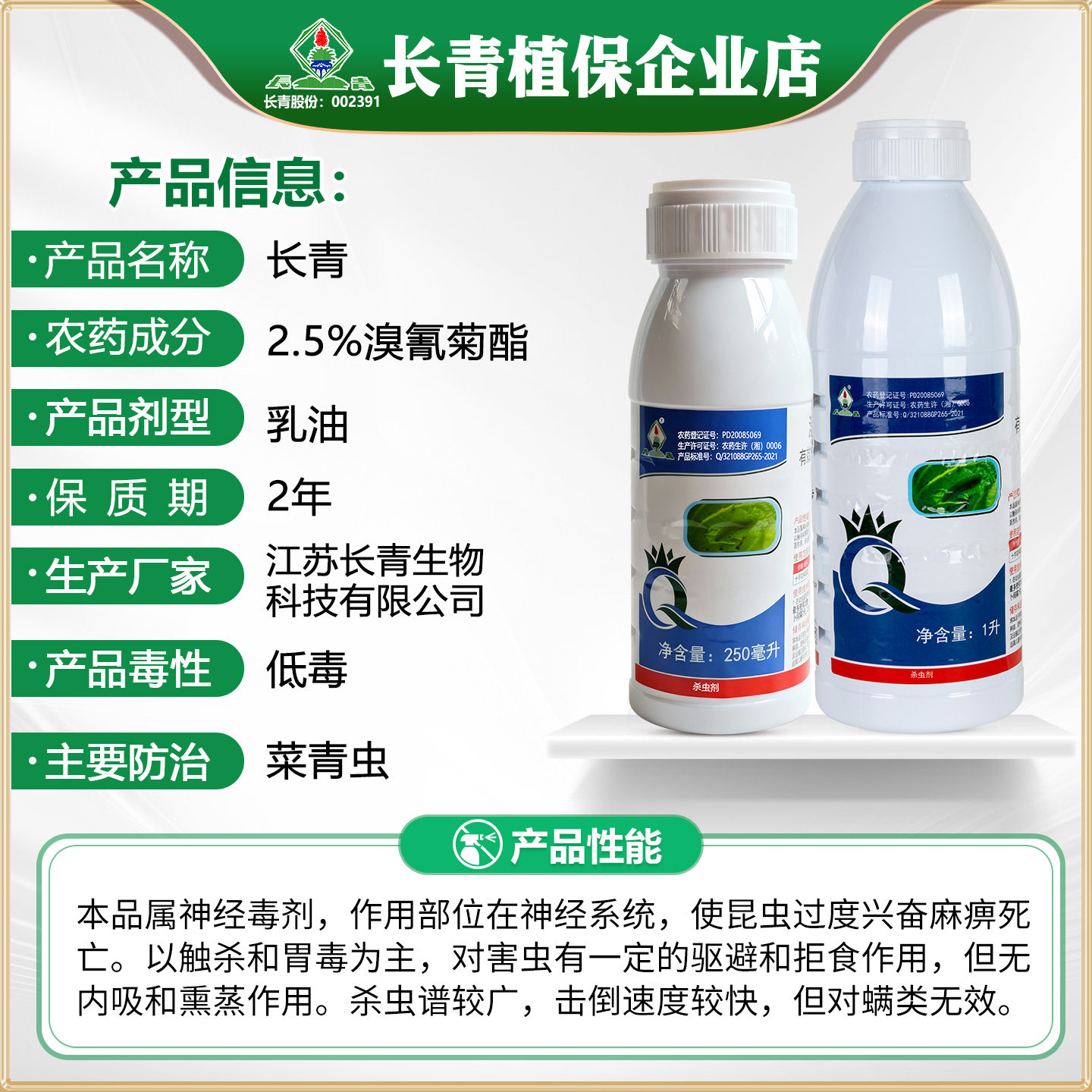 📚 长青2.5%溴氰菊酯甘蓝棉铃虫菜青虫大虫十字花科蔬菜农药杀虫剂