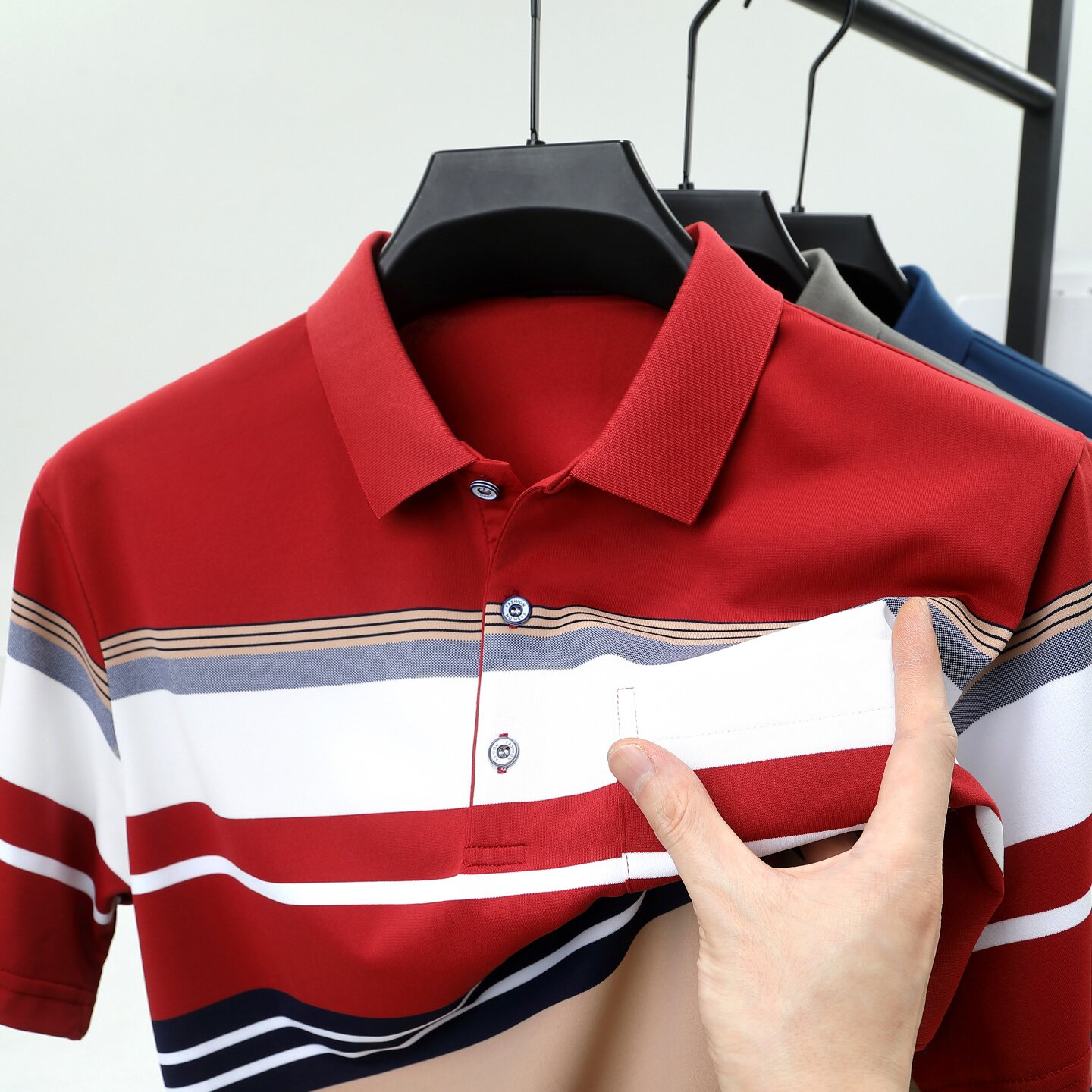 28¥ CZ005 15MN5iLNgYj¥ https://m.tb.cn/h.iIpw9zS 男士夏季POLO衫短袖t恤条纹中年爸爸装冰丝有带口袋翻有带领上衣 --------------------- 【原售价】79元 【现售价】79元。