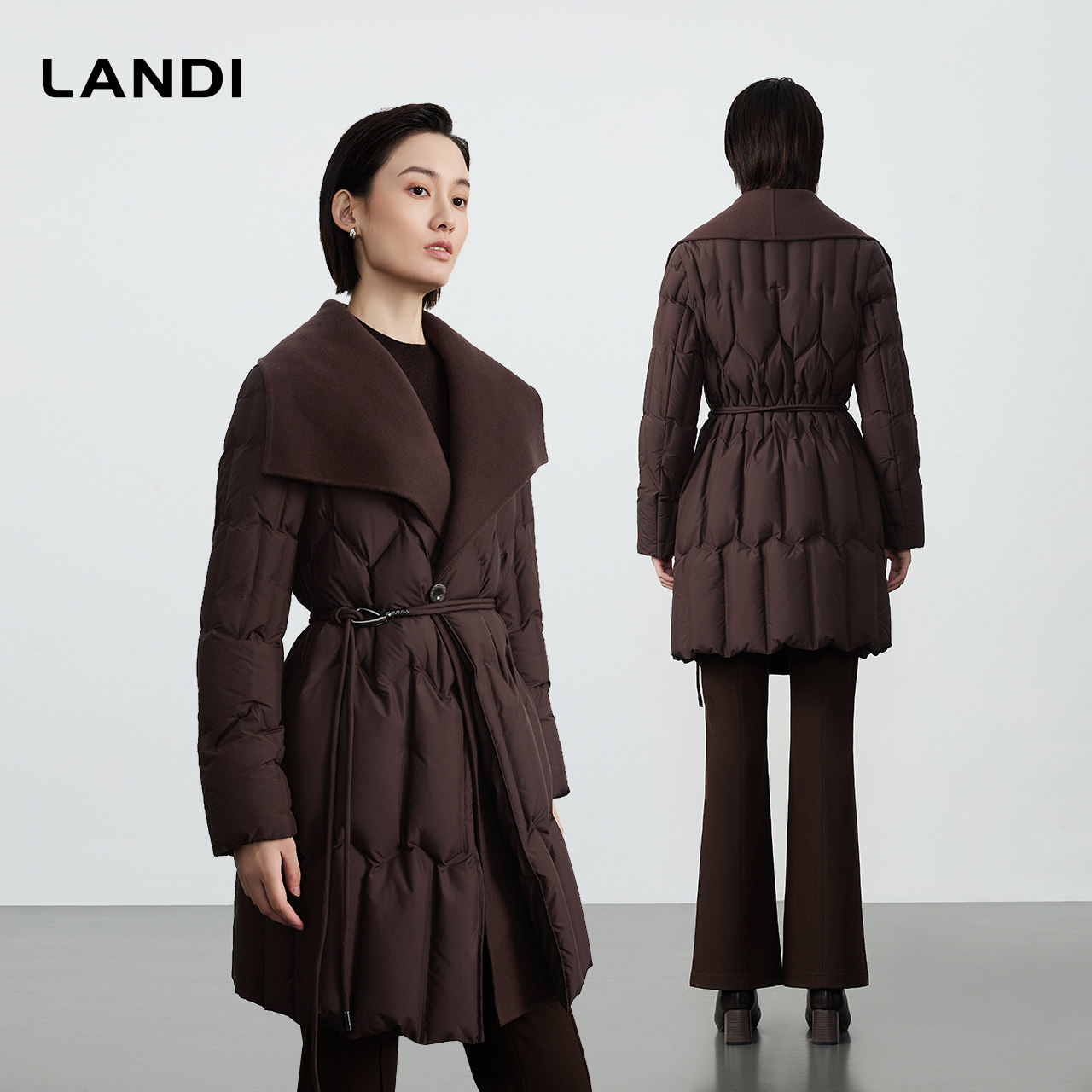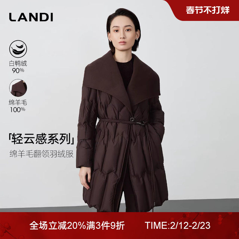💫惊艳冬日!轻云感系列LANDI深咖色绵羊毛羽绒服,翻领中长款,券后价仅2238元💫