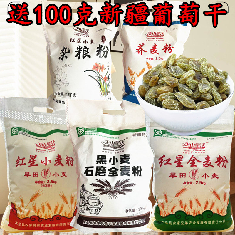 📚 天山旱沃红星小麦粉2.5kg面粉黑小麦石磨全麦粉荞麦粉杂粮馒头粉